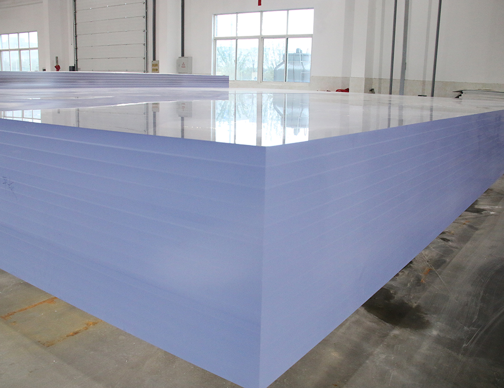 研发团队针对泳池的使用环境对亚克力的生产制造配方进行独特的调节,确保亚克力使用过程中不易发黄,不易变色。