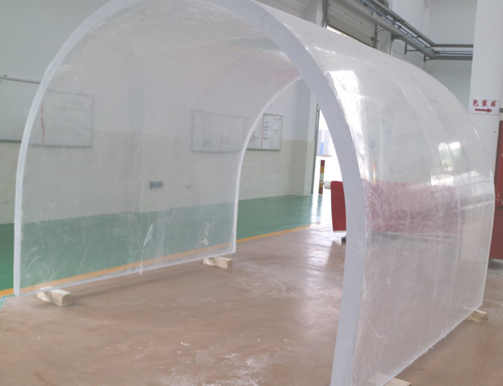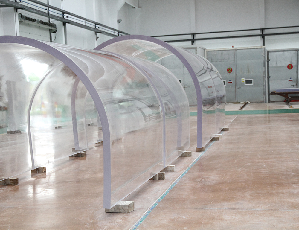 构成全景透明隧道的拱形顶和壁,让游客仿佛穿行海底。亚克力的高强度和可弯曲特性是实现此设计的关键。