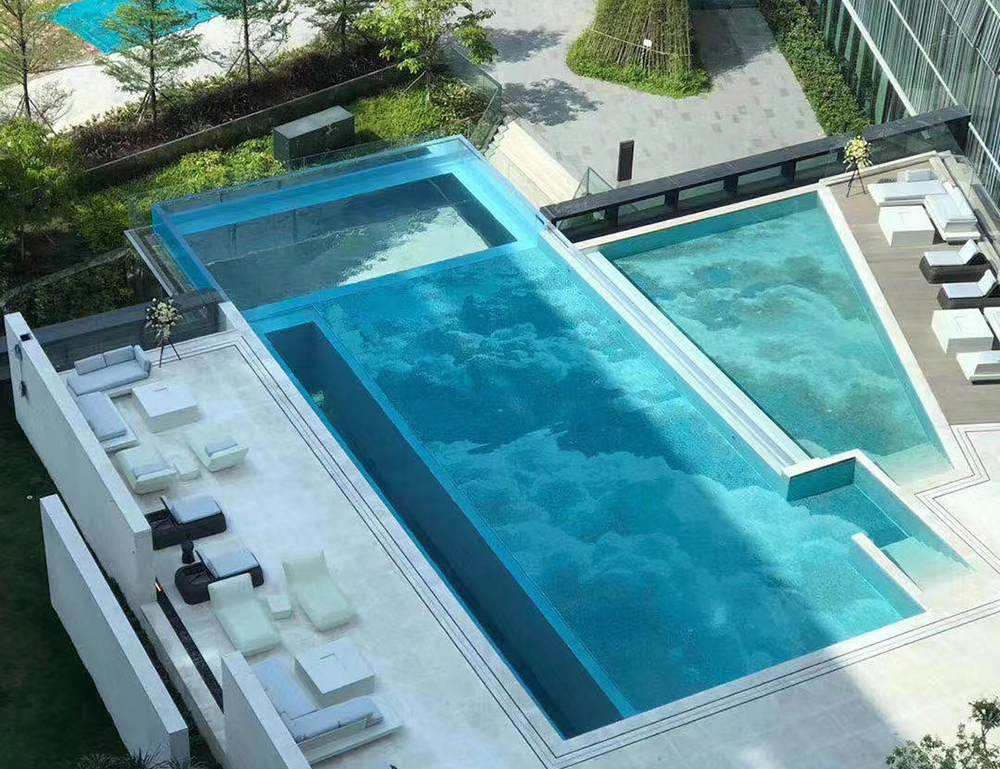 汤臣科技承接的泳池项目,设计团队进行方案设计优化,结合亚克力的韧性和可塑性,精密计算亚克力的受力承重,确保项目使用安全。
