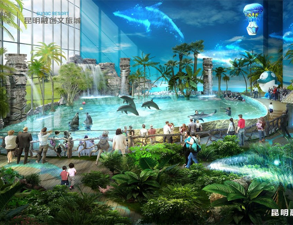 项目概况:昆明融创文旅城,占据约2000亩生态湿地城市绿肺,占地约3500亩超大体量,着力打造以云南少数民族文化为内核,集合雪世界、海世界两大世界乐园 、特色旅游小镇、主题湿地公园、酒店群、品质住区、“教育+生态”、“医疗+生态”等七大创新业态。