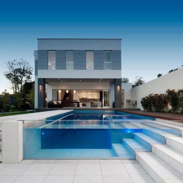 2、私属高端住宅场景:主要用于别墅泳池,可定制透明观景墙等造型,将室内空间与庭院自然衔接,打造晶莹剔透的现代美感,满足私属奢华休闲需求,同时可根据别墅场地大小、造型需求,定制不同尺寸、弧度的板材。
